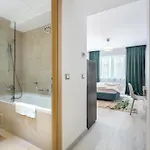 Aside from comfort amenities like an air conditioner, the interior also features a flat-screen TV with satellite channels for an enjoyable stay. Furnished with care, the 35 m^2 Charlotte Grand Bucharest Apartment is complete with a writing table, as well as soundproof windows. Beds fitted with down-feather pillows are at guests' disposal. A separate toilet, a bath, and a shower are available in the bathroom. You'll also come across hair dryers and bath sheets.